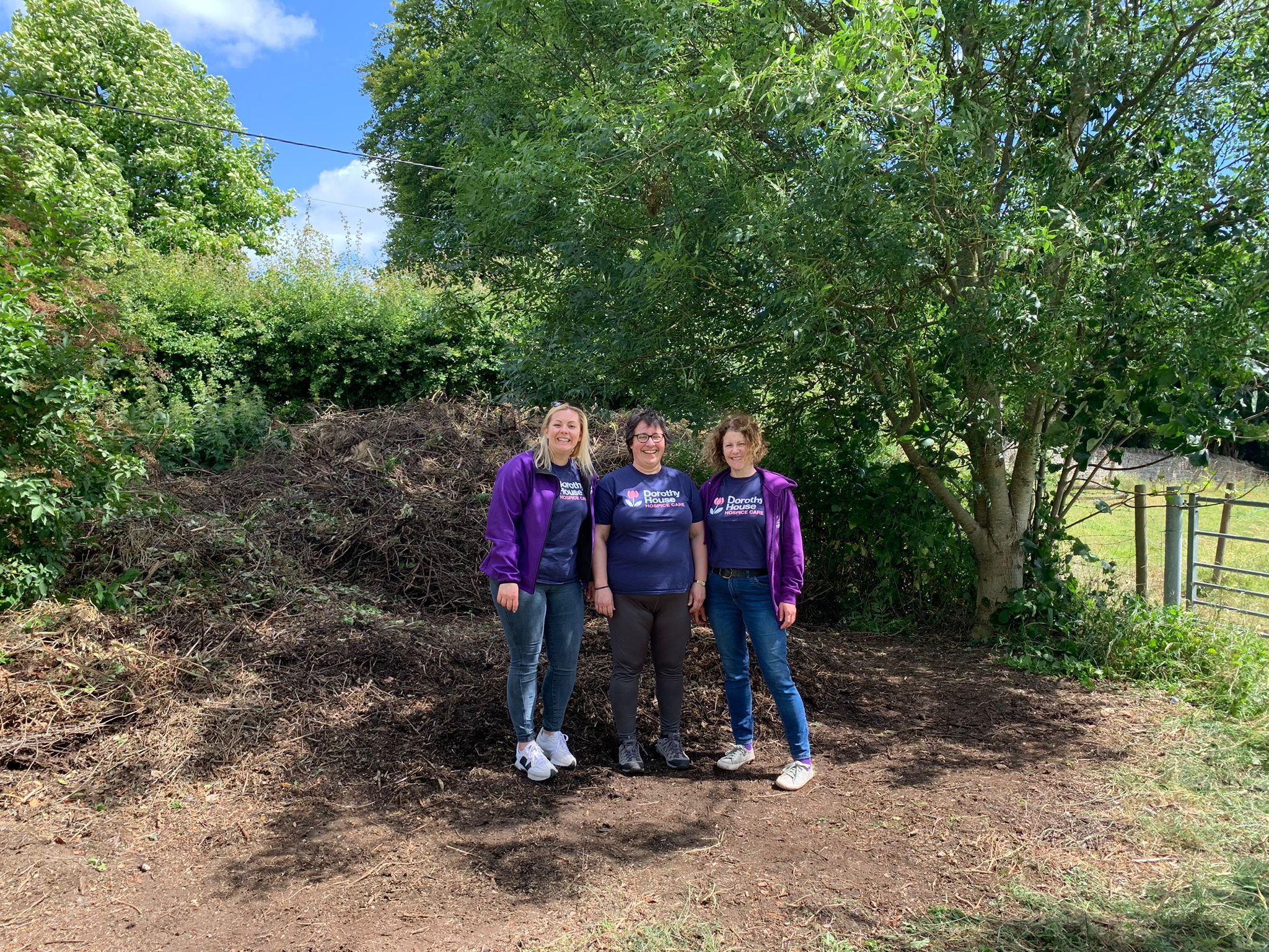 This year, Hannah, Jo and Catherine decided to take their volunteering day at Dorothy House Hospice Care – our ‘Charity of the Year’ for 2024. The team were tasked with clearing vegetation from a field that was blocking a gate, necessary for access to the upcoming Dorothy House ‘Paws in the Park’ fundraising event in October. They clipped back brambles, removed weeds, broke down large branches, and shovelled and wheelbarrowed everything to the back of the field. They also picked out non-compostable rubbish for recycling and even relocated some wildlife, including a toad!